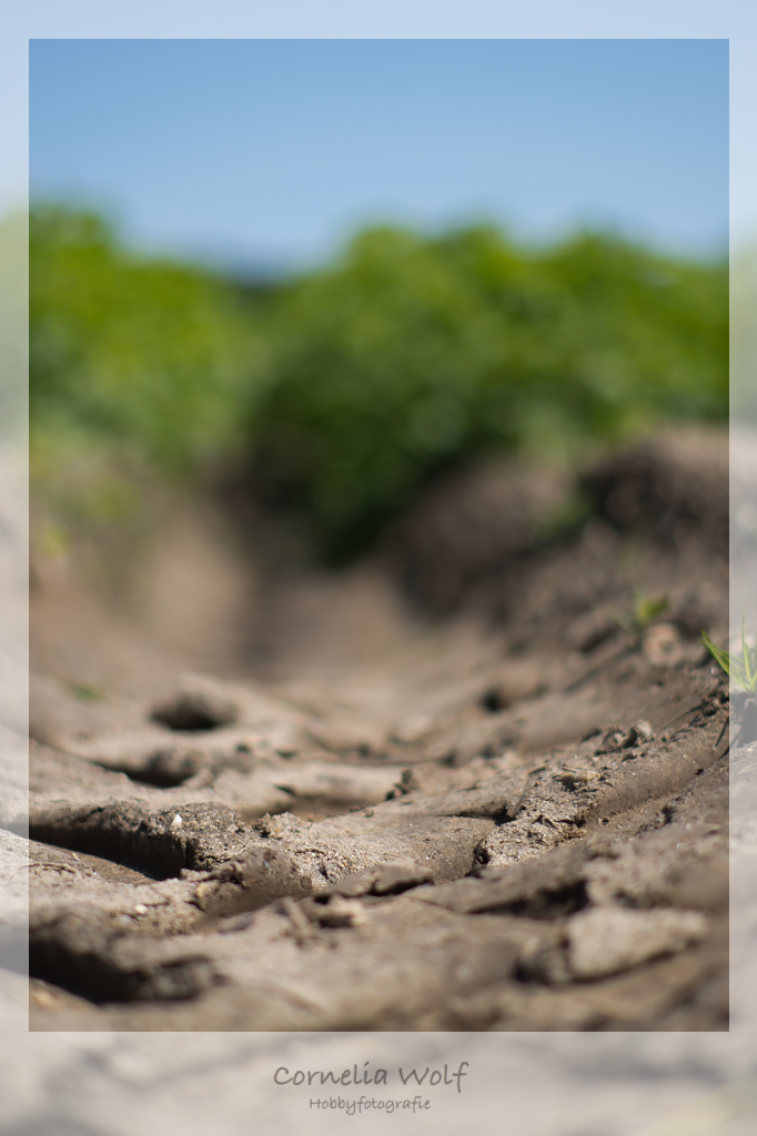 Traktorspuren auf dem Kartoffelfeld