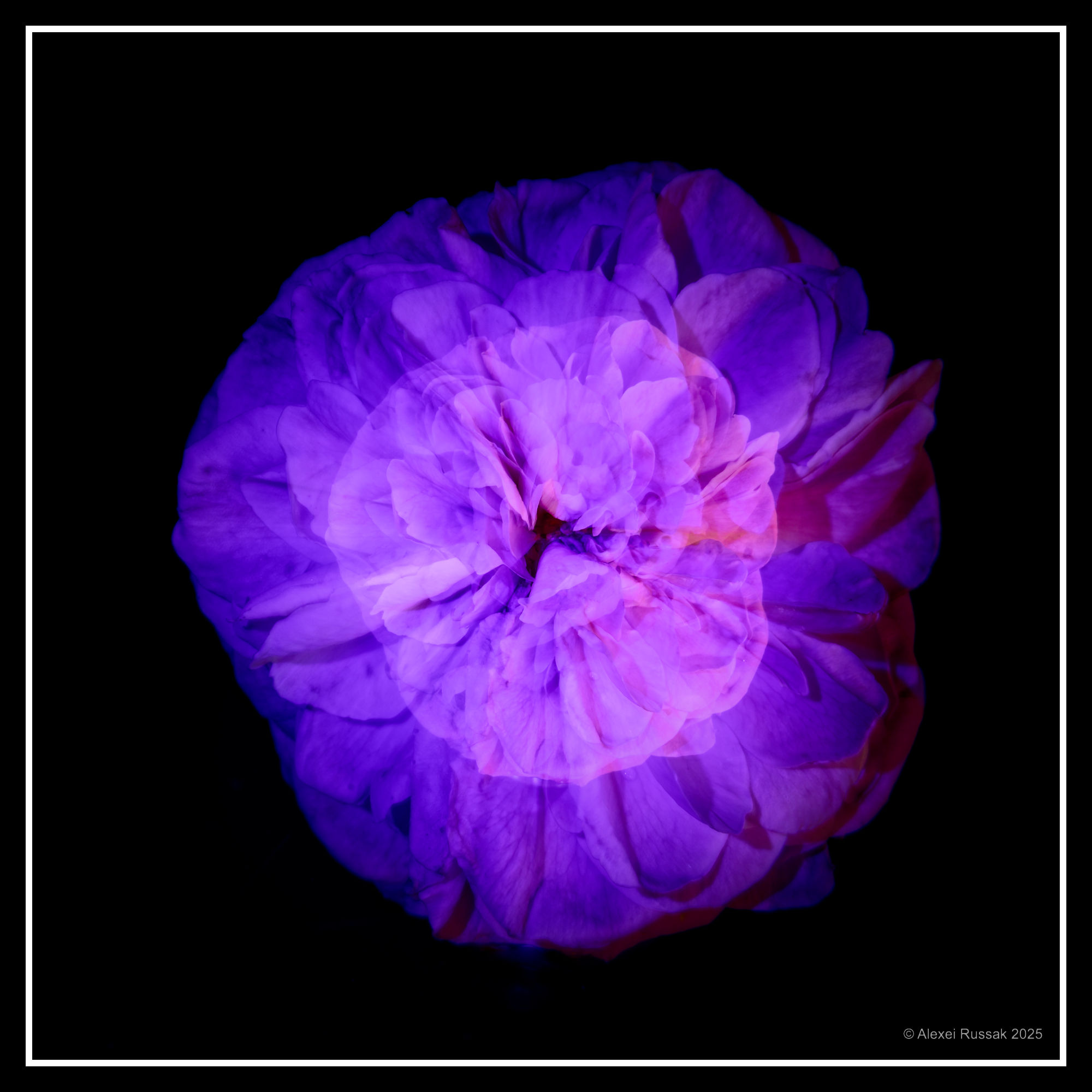 Rose, schwarzer Tisch, Stativ und UV-Lampe, eine Aufnahme (kein Komposing!)