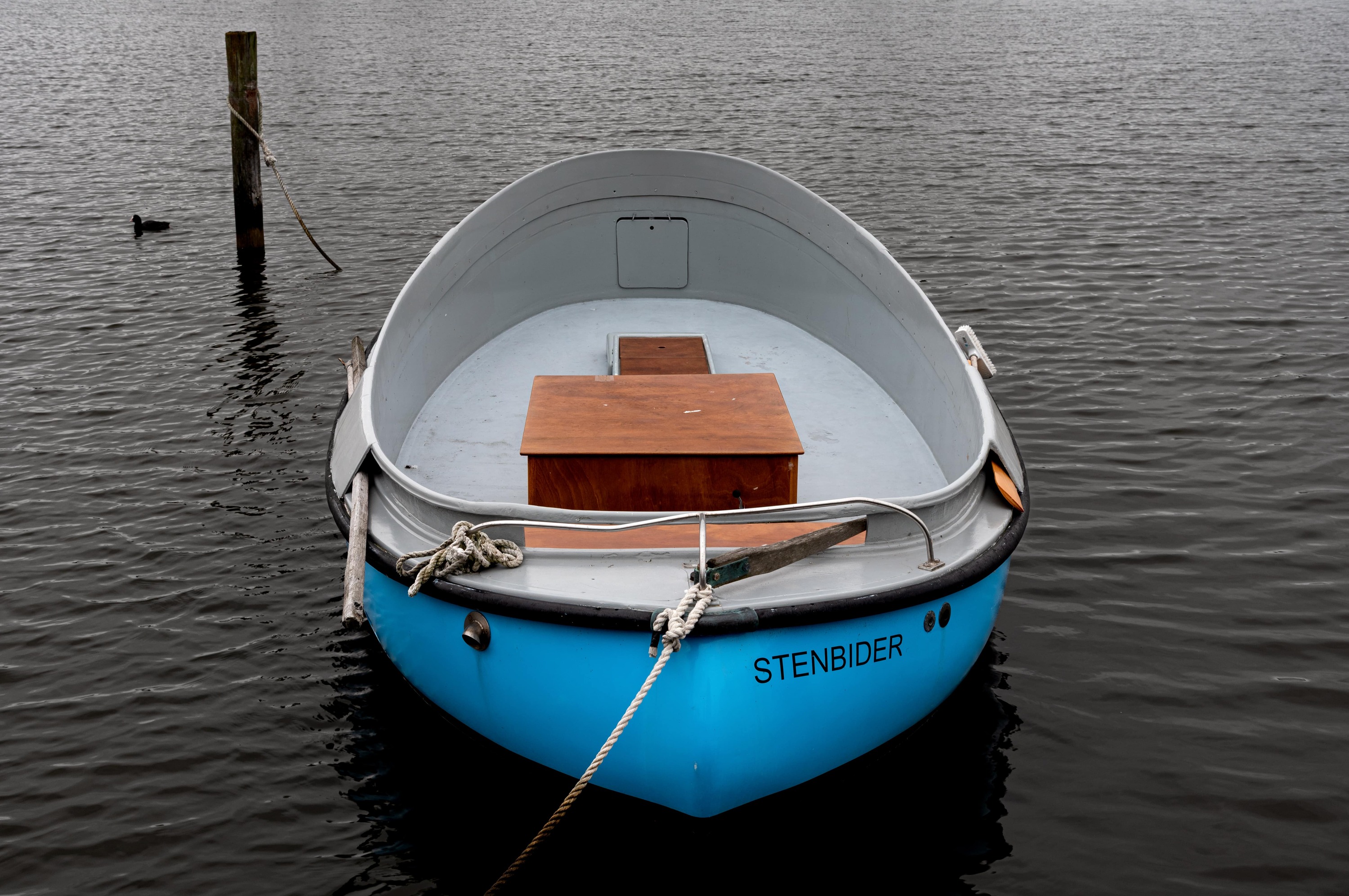 Zufälligerweise stand ein kleines ovales Boot am Steg im Hafen von Arnis , wo ich ahnungslos verboterweise zum Boot ging und ein Foto ergattert hatte.