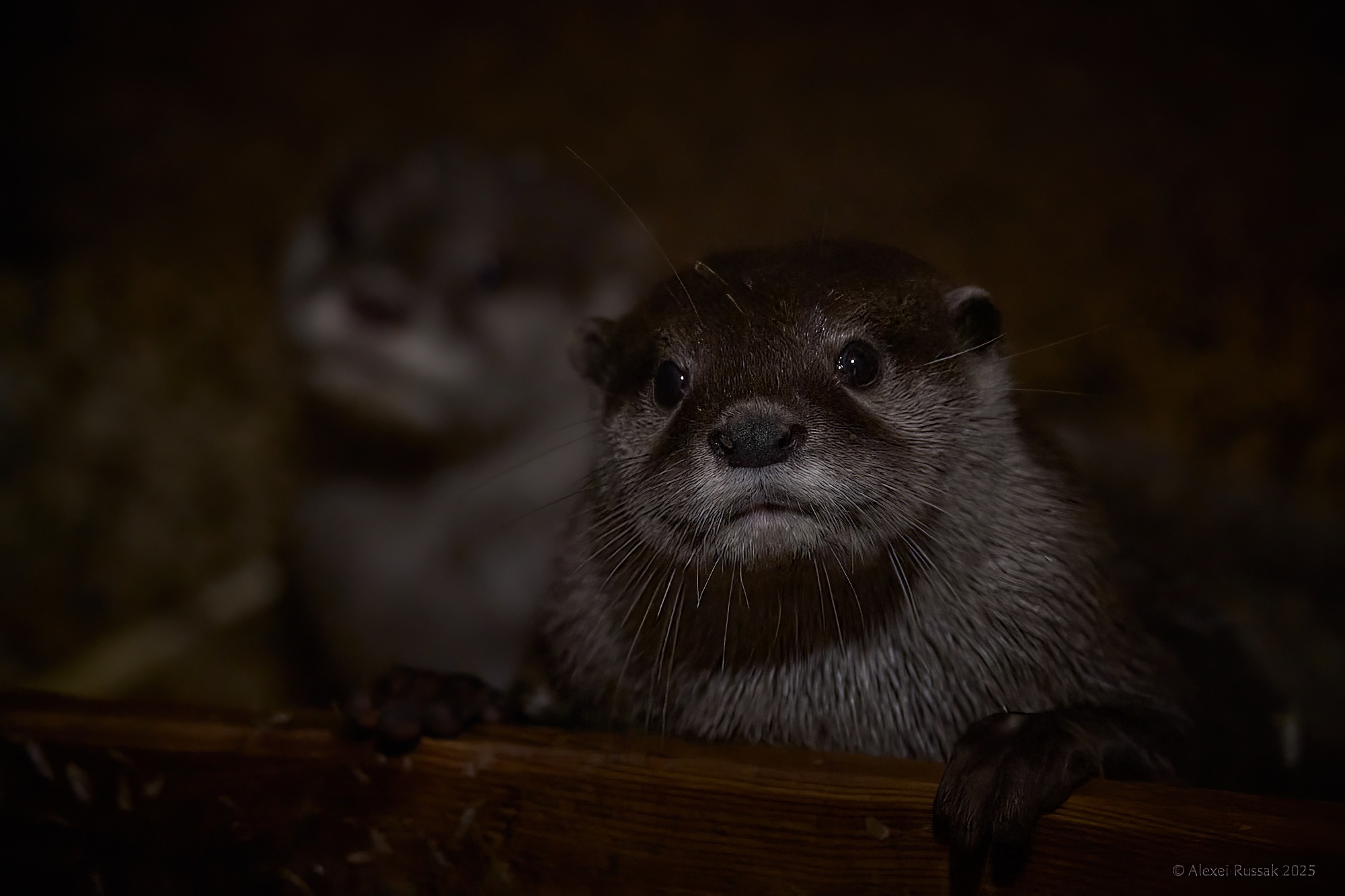 Während das Gehege der Zwergseeotter gereinigt wurde, mussten diese in ihrer dunklen Höhle ausharren. Zu unserem Glück war ein Fenster nicht geschlossen und so konnten wir einen Blick hinein werfen ![]()