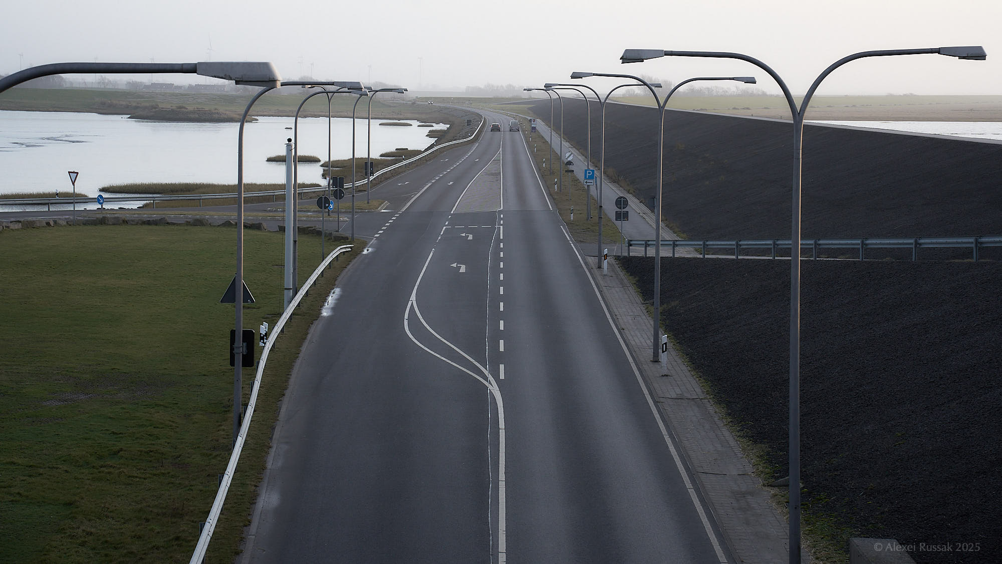 Straße hinter dem Deich
