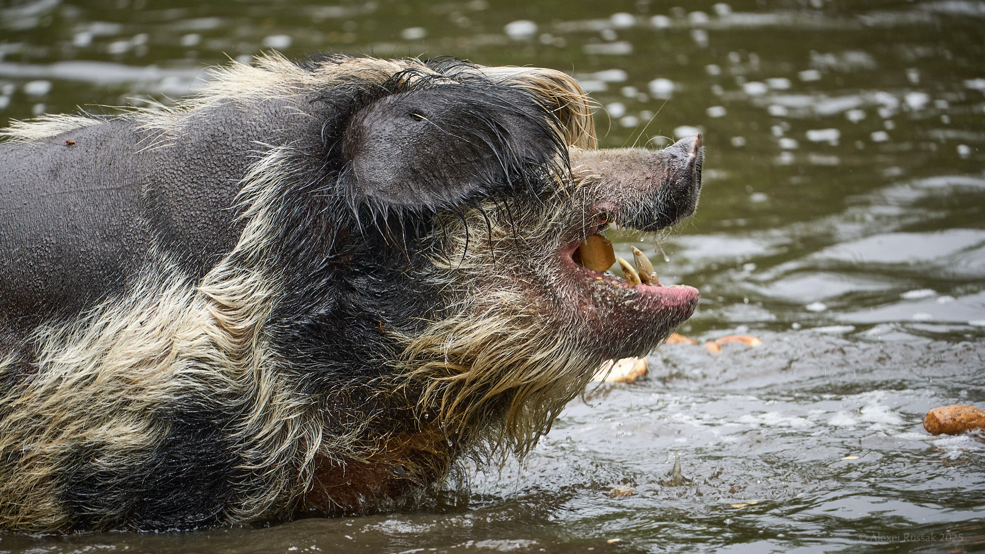 Die Turopolje Schweine aus Kroatien schwimmen offenbar sehr gerne. Wer einen Hund hat kennt das - die Tiere dabei zu beobachten, den Spaß, die Freude den die Tiere dabei haben - Herrlich!